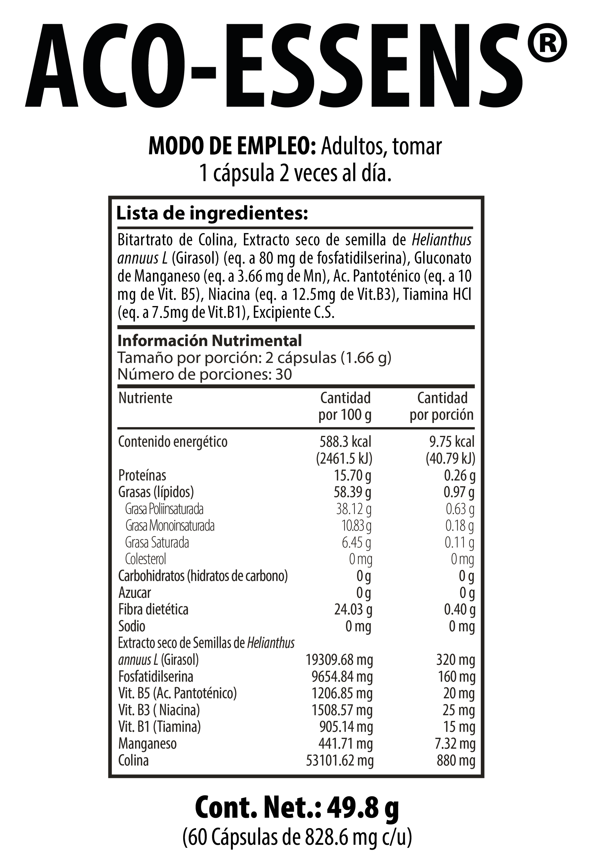Formula with Sunflower Seed Extract, Phosphatidylserine, Vitamins, and Minerals. Its purpose is to complement total dietary intake.