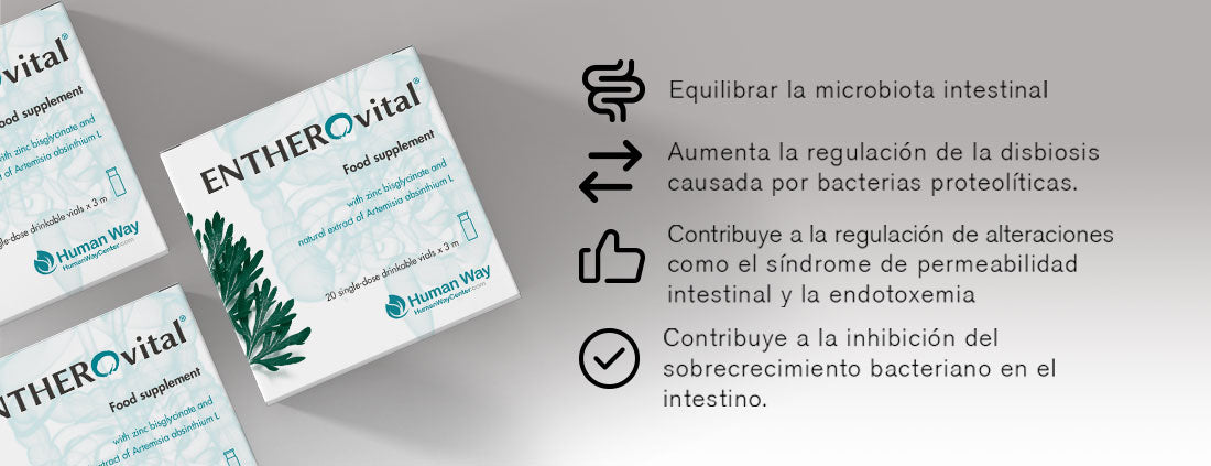 entherovital viales de Solaris elaborado con ingredientes naturales (Artemisia Absinthium) y bisglicitano de zinc refuerza tu sistema de defensa interno, protegiendolo contra las molestias y bloqueando la penetración de toxinas. La purificación hace que su sistema inmunológico funcione de manera más efectiva. Interviene en el proceso digestivo al promover una buena digestión de los alimentos y regular el tránsito intestinal.
