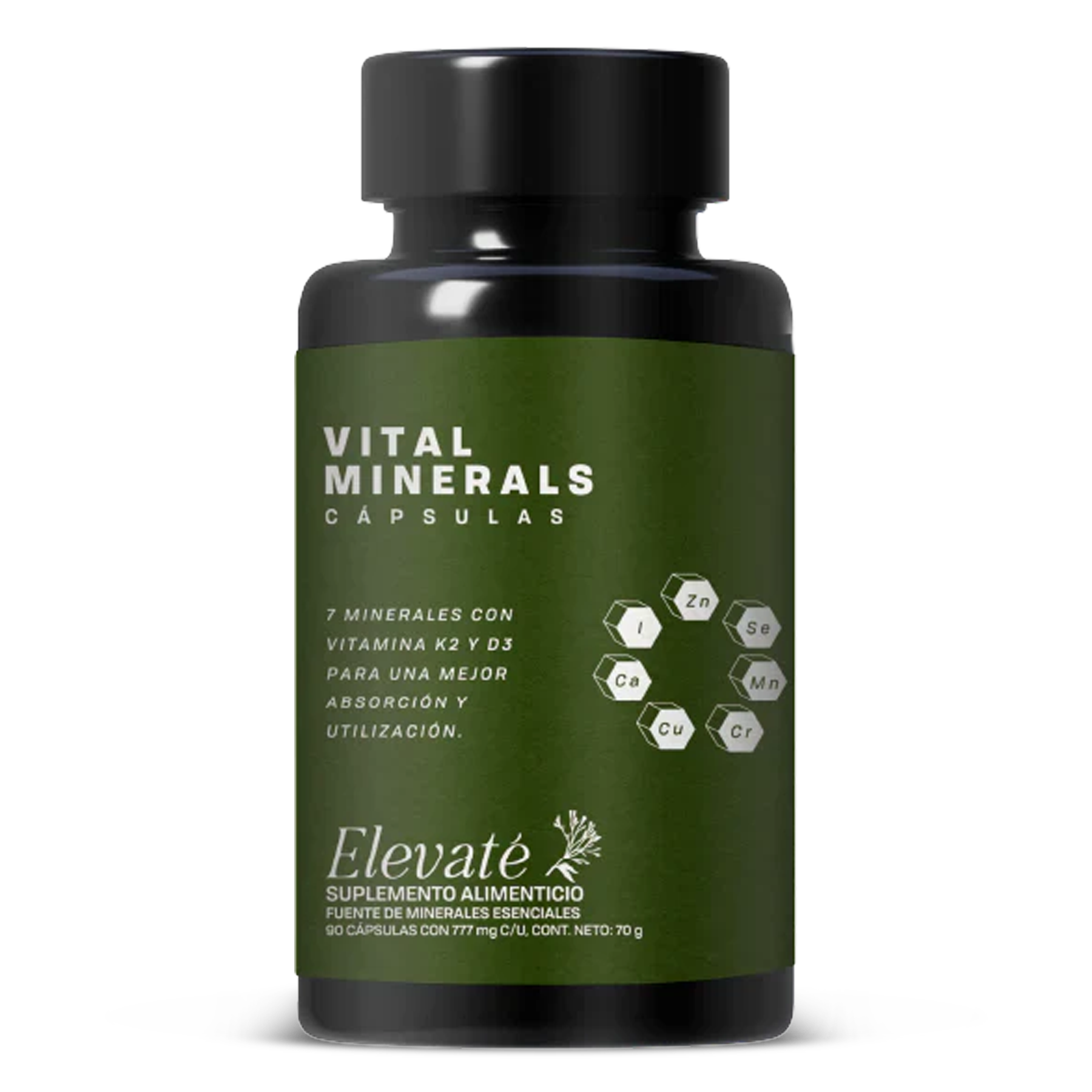 Vital Minerals is a formula designed by Elevaté Botánica to address deficiencies in key microminerals in the human body. Each capsule contains 777 mg and combines highly bioavailable minerals with essential vitamins that support vital processes such as bone, immune, endocrine, and neurological health. See the text: This is why we created Vital Minerals.